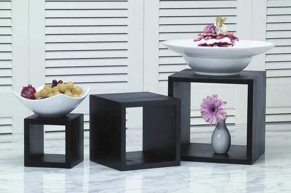 Riser Set, Color Mahogany, Material Wood, Sizes Included (1) 5 in Cube, (1) 7 in Cube, (1) 9 in Cube