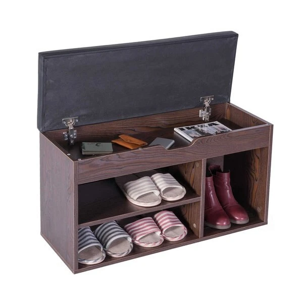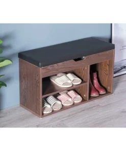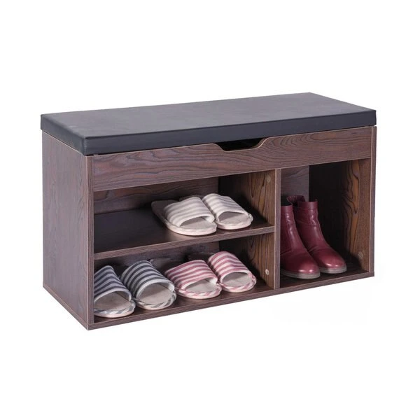 Combine comfort and organization with this wooden shoe Cubicle storage bench. The storage bench has 3 open compartments to store of various size shoes and boots. Top seat offers a soft cushion to sit on and opens up to reveal extra interior storage space to make entryways and mudrooms organized and comfortable. Welcome home.