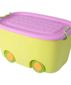 Stackable Toy Storage Box with Wheels is a great storage solution for any kids' bedroom or playroom. Handles and wheels allow you to easily move the toy box from room to room and a grooved lid allows multiple boxes to be stacked securely. Its playful colors will add cheer to your playroom and invite your kids to play.