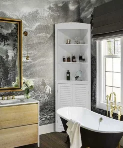 <p>This multifunctional free standing storage cabinet offers reliable storage space. It will perfectly meet your daily needs to keep your linen, towels and other personal morning stuff handy. It creates a simple and modern appearance with its additional storage space. This is also known as a freestanding bathroom storage corner cabinet which is intended to easily grab frequently used items or store out-of-sight items, it will forever satisfy all your demands.</p><ul><li>SIZE: 23.75" W x 12" D x 67.75" H</li><li>FEATURES: Adjustable open shelves for easy access and double shutter doors</li><li>MULTIUSE: Storage cabinet for the bathroom, vanity, bedroom, or office to hold your linen, cosmetics, potpourri, and towels handy</li><li>ELEGANT AND CLASSIC DESIGN: The classic white finish and construction brings a modern and elegant look to any home.</li><li>SPACE SAVING: Our bathroom corner cabinet is made just for that space where you could use a little extra storage room, a perfect addition to your bathroom space.</li></ul>