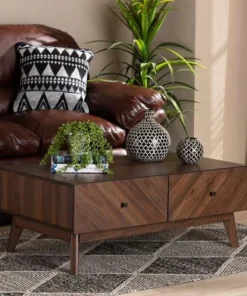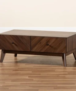 Shape the layout of your living room with the refined, energetic style of the Hartman coffee table. Made in Malaysia, this coffee table exudes natural warmth with its walnut brown finished wood frame. Two drawers offer secure storage for living room essentials while a long, open shelf offers a convenient display space for decorative items. Requiring assembly, the Hartman exhibits a dynamic wood grain to convey a robust visual texture. With a sleek, streamlined design, the Hartman coffee table is a fantastic complement to the modern home.