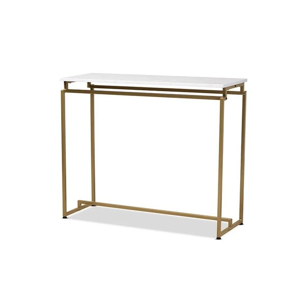 Cultivate a luxurious feel in your space with the Renzo console table. The Renzo features a stunning white faux marble tabletop that bears a striking resemblance to the genuine stone. The clean. sharp lines on the gold-finished frame convey a light. airy feel. Its slim silhouette makes it well suited for placement in the entryway or behind a sofa in the living room. FeaturesModern and contemporary console tableConstructed from metal. MDF wood. and PVCSpecificationsFinished: GoldLegs: 37.4" HDimension: 37.99" H x 46.46" W x 15.75" D