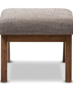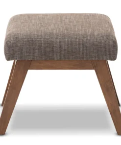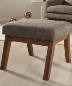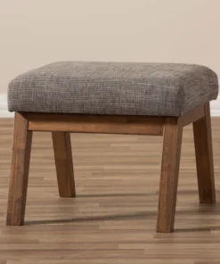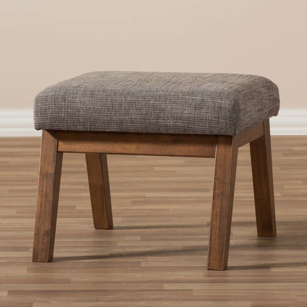 Mid-century modern style makes this handsome ottoman a true charmer. This minimalist footstool pairs the dark walnut finished exposed wood with the superb softness of gravel grey and brown upholstery. Perfect for living room, study or office, the simplicity in design leads the mid-century modern feel of this piece of furniture. Created to be the companion of the Aberdeen lounge chair, the Aberdeen looks cool by itself as an ottoman or footstool. The ottoman requires assembly.