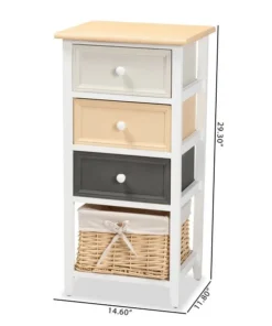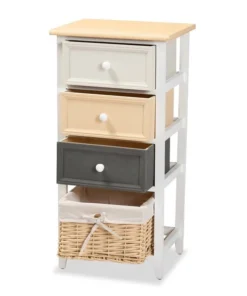Baxton Studio Adonis Mid-Century Transitional Multi-Colored Wood 3-Drawer Storage Unit with Basket