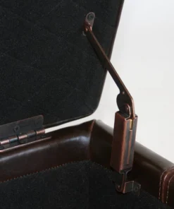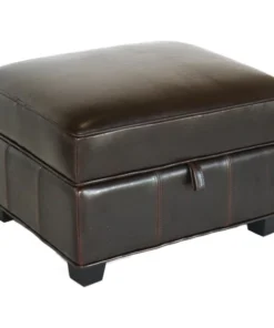 While this rich dark brown ottoman may appear traditional at first glance, it offers an up-to-date storage feature. Flip up the lid of the ottoman to store items necessary for relaxing in your favorite chair.