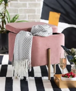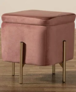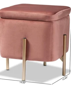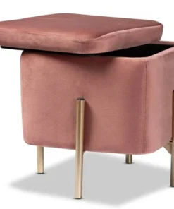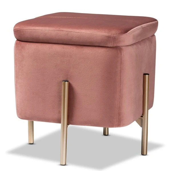 Baxton Studio Aleron Contemporary Glam and Luxe Pink Velvet Upholstered and Gold Finished Metal Storage Ottoman