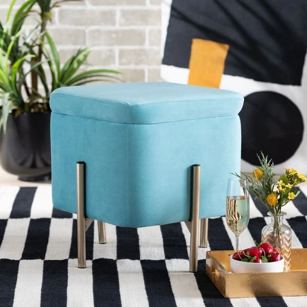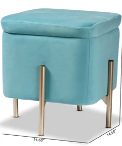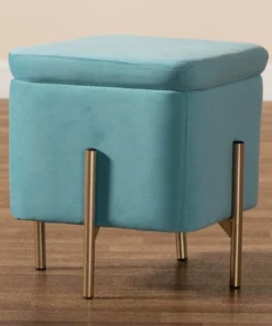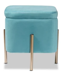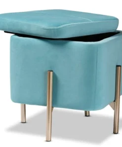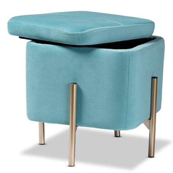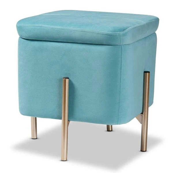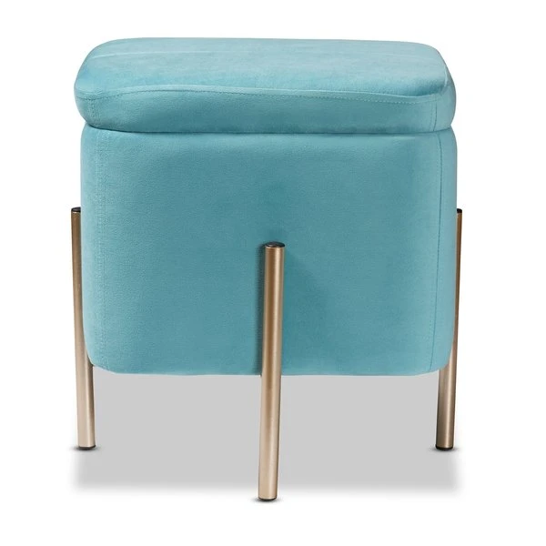 Baxton Studio Aleron Glam and Luxe Sky Blue Velvet Upholstered and Gold Finished Metal Storage Ottoman