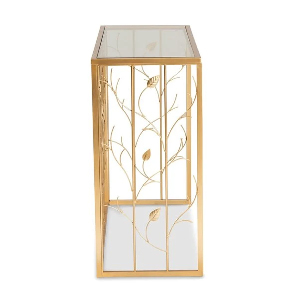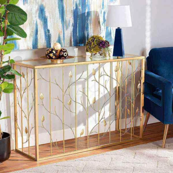Stunning contemporary design is adorned with nature inspired accents to create the Anaya console table. Made in China, the Anaya is comprised of a gold finished metal frame fitted with a glass tabletop. Requiring assembly, slim branches with leaves extend from the frame to convey a natural and open feel. The large surface area of the rectangular glass tabletop provides ample space to display decorations in modern style. A striking addition that transforms any entryway, the Anaya console table adds an element of luxury to any space.