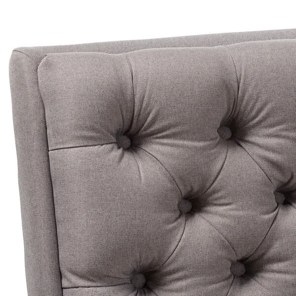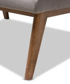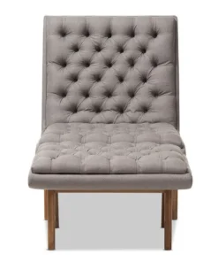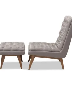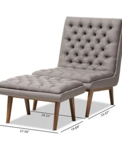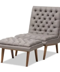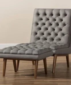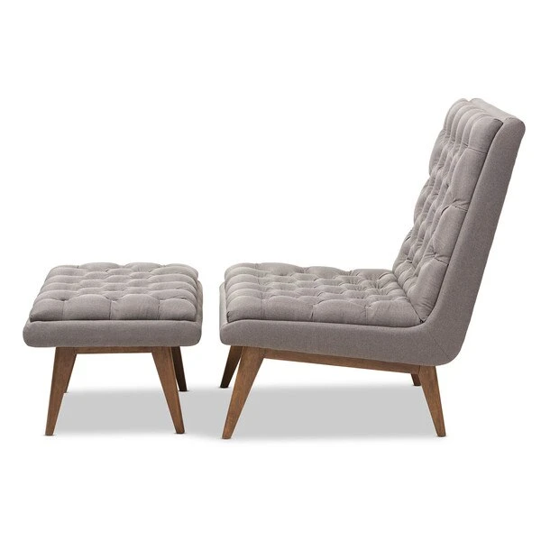 One look at the Annetha lounge chair and ottoman set is all you need to see that these stylish pieces are meant for comfort. This chair and ottoman's clean, square design and low-profile are mid-century modern-inspired. The Annetha is built to last with a solid rubberwood frame and angled walnut-finished legs. The seat, chair back and ottoman are foam-padded and upholstered in grey fabric for optimum comfort. The Annetha features a generously sized seating area with a reclined back, perfect for lounging and relaxing – even better when you put your feet up on the matching ottoman. The sumptuous button-tufting makes this lounge chair and ottoman set a smart addition to your living room, waiting and reception areas, or any shared space. The Annetha requires assembly.