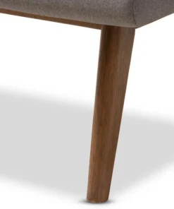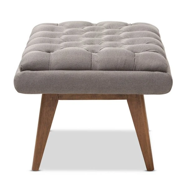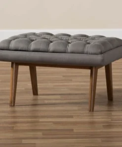One look at the Annetha ottoman is all you need to see that this stylish piece is meant for comfort. This ottoman's clean, square design and low-profile are mid-century modern-inspired. The Annetha is built to last with a solid rubberwood frame and angled walnut-finished legs. The ottoman is foam-padded and upholstered in grey fabric for optimum comfort. The Annetha is generously sized, perfect for lounging and relaxing. The sumptuous button-tufting makes this ottoman a smart addition to your living room, waiting and reception areas, or any shared space. The Annetha requires assembly.