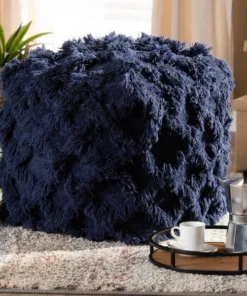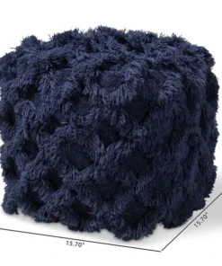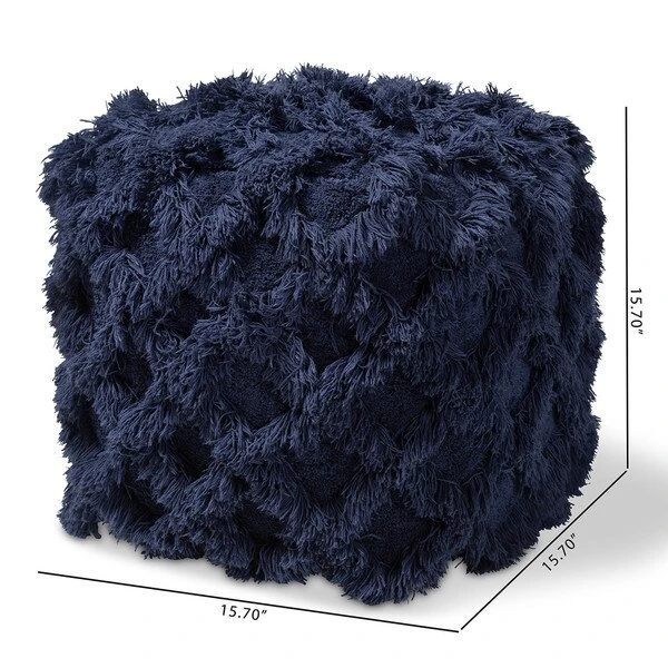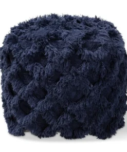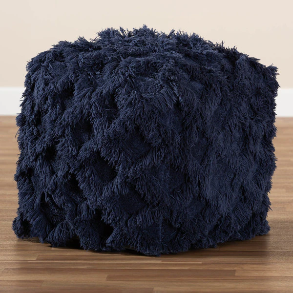 Add a cozy, bohemian touch to any space with the Asuka pouf. Handwoven from a soft, fleece-like cotton, the Asuka features a chic navy hue. A criss-cross overlay of fringe lends rich texture. This versatile piece can be used as a seat, footstool, or casual coffee table.