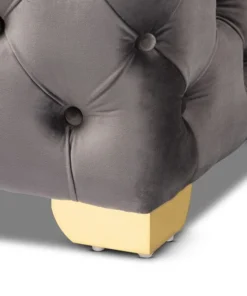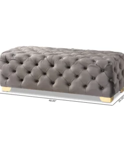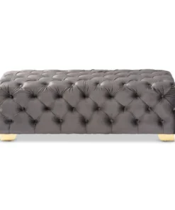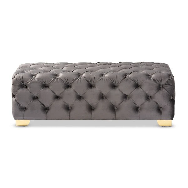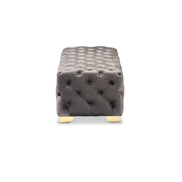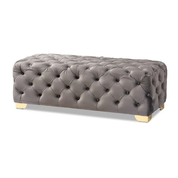 Add glamour to any space with the Avara ottoman. This plywood ottoman is upholstered in a sumptuous velvet fabric that displays a subtle sheen. All-over button tufting and lustrous gold-finished metal legs elevate the Avara to new heights of luxury. Place this stunning piece in the entryway or at the foot of the bed. The Avara bench ottoman will arrive fully assembled.