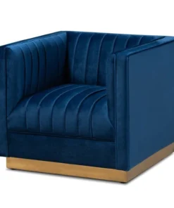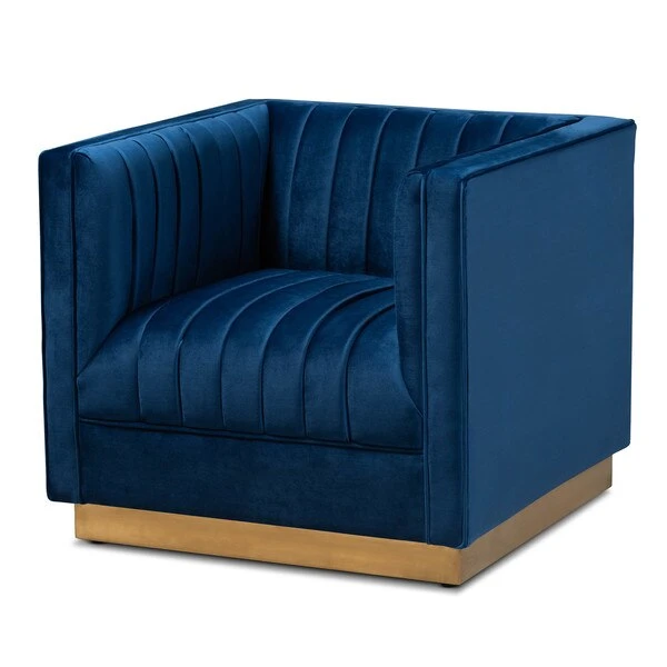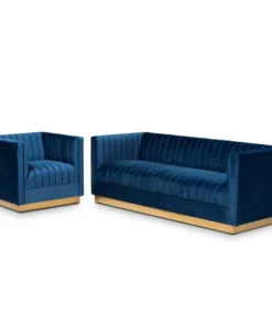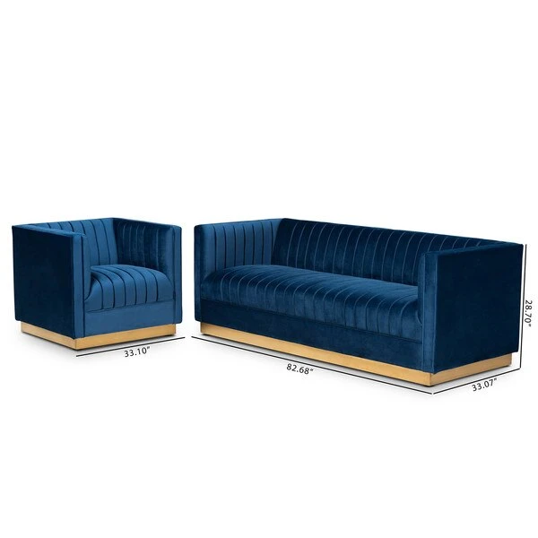 Make a chic statement in your living room with the Aveline living room set. Featuring one sofa and one armchair, this sleek set is upholstered in a rich velvet fabric that feels exceptionally soft to the touch. Channel tufting highlights the stunning sheen in the velvet, while the striking antique gold finished metal base anchors the glamorous look of each piece. Designed for both style and comfort, the sofa and armchair are generously padded with foam to provide a truly luxurious feel. The Aveline living room set will arrive fully assembled.