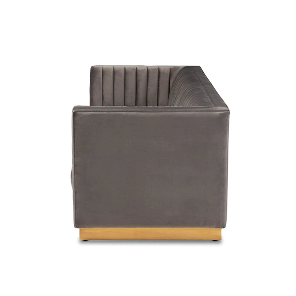 Make a chic statement in your living room with the Aveline sofa. Featuring a sleek silhouette, the Aveline is upholstered in a rich velvet fabric that feels exceptionally soft to the touch. Channel tufting highlights the stunning sheen in the velvet, while the striking antique gold finished metal base anchors the glamorous look of this sofa. Designed for both style and comfort, the Aveline is generously padded with foam to provide a truly luxurious feel. The Aveline sofa will arrive fully assembled.