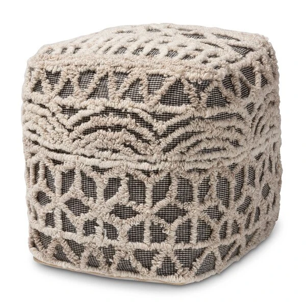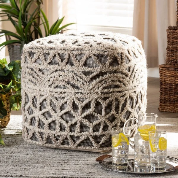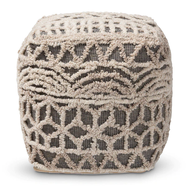 Add a cozy, bohemian touch to any space with the Avery pouf. Handwoven from wool, the Avery features an understated blend of beige and brown hues. The pouf is overlaid with an intricately woven geometric pattern, lending rich texture. This versatile piece can be used as a seat, footstool, or casual coffee table.