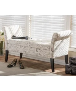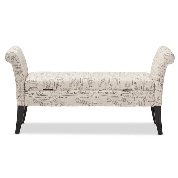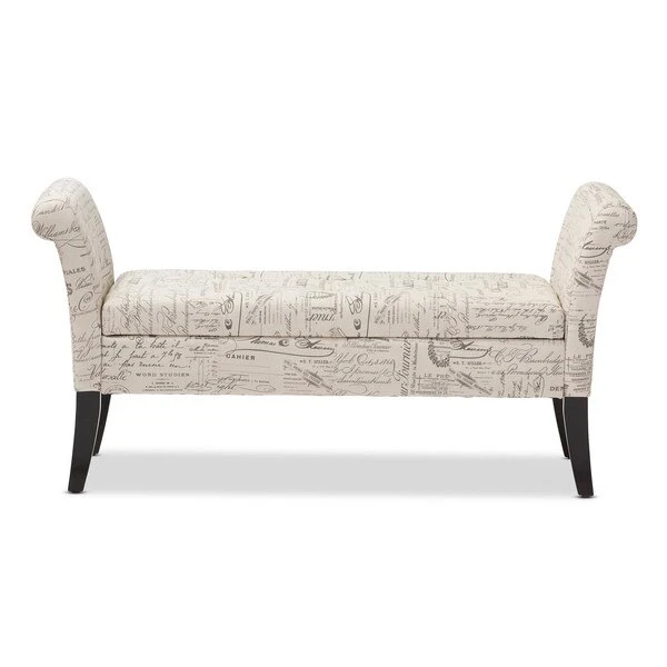 French Countryside. Timeless tradition blends seamlessly with the sophisticated styling of the Avignon fabric storage bench. Featuring French laundry fabric, this overstuffed bench provides generous comfort while attached seat cushion offers neatness. The Avignon bench is constructed with MDF and plywood's with quality foam cushion construction for seating comfort. As an entryway bench or bed end bench in your bedroom, this piece is perfect and inviting with hidden storage as function. The bench requires assembly.