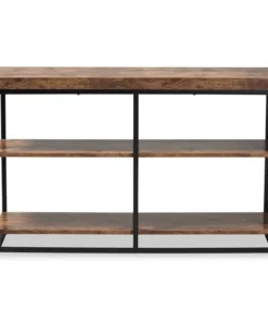 Baxton Studio Bardot Modern Industrial Walnut Brown Finished Wood and Black Metal 3-Tier Console Table