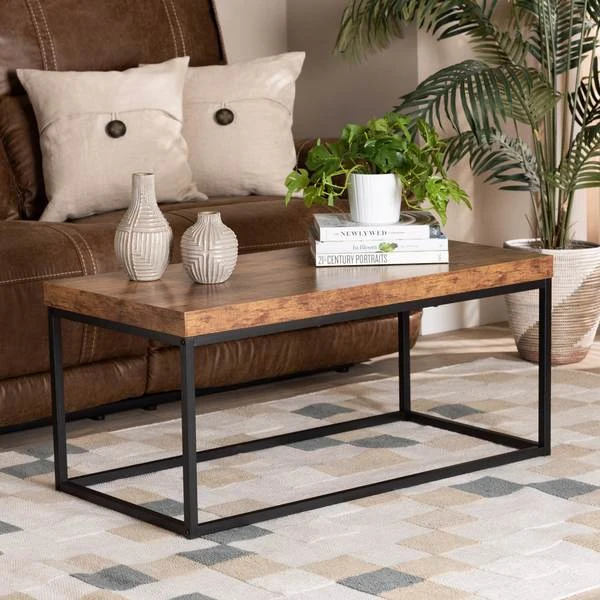 Baxton Studio Bardot Modern Industrial Walnut Brown Finished Wood and Black Metal Coffee Table