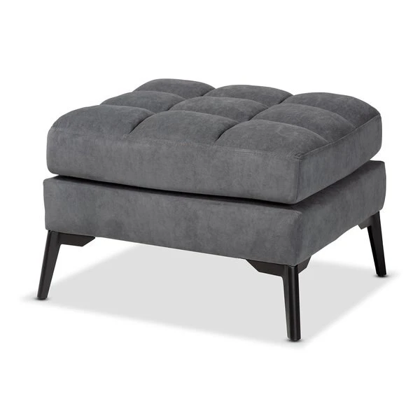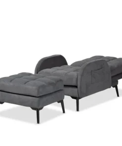 Baxton Studio Belden ModernGrey Velvet Upholstered and Black Metal 2-Piece Lounge Chair and Ottoman Set