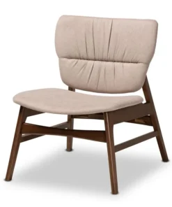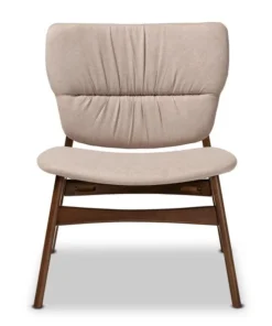 Baxton Studio Benito Transitional Beige Fabric Upholstered and Walnut Brown Finished Wood Accent Chair
