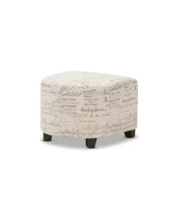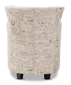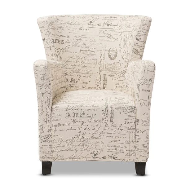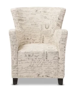 Maximum classic. Take a load off and lounge around with this stunningly built Benson club chair with ottoman in French script-patterned fabric. Constructed of hardwood solids with modern accents, these chairs and ottomans are sure to catch the eye of anyone who likes a good place to kick back. High-density foam cushions and encased coils provide ideal seating comfort. Two-piece package includes accent chair and ottoman, as shown. The living room chair set comes fully assembled.