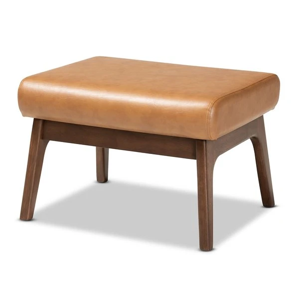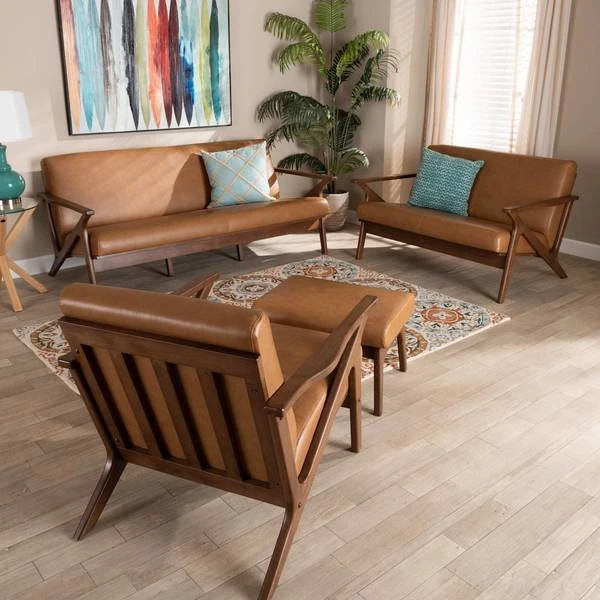 Baxton Studio Bianca Mid-Century Modern Walnut Brown Finished Wood and Tan Faux Leather 4-Piece Living Room Set