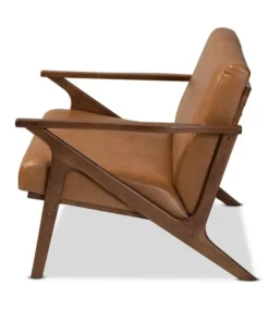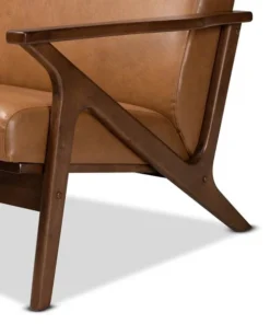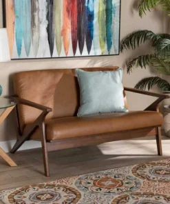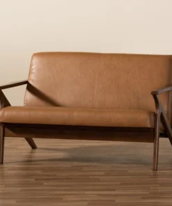 Baxton Studio Bianca Mid-Century Modern Walnut Brown Finished Wood and Tan Faux Leather Effect Loveseat