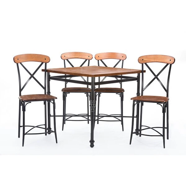 Combine rustic styling and contemporary flair and you have the core of our Broxburn Wood and Metal 5-Piece Pub Set. Right angles, triangles and ovals abound in this pub set’s antique black-finished metalwork and wood construction for a geometrically intriguing presentation. Distressed brown ash veneer wood top and chair seats maintain the vintage-industrial vibe. Sturdy construction ensures years of use.
