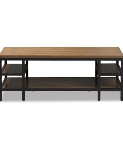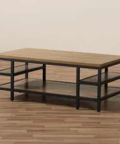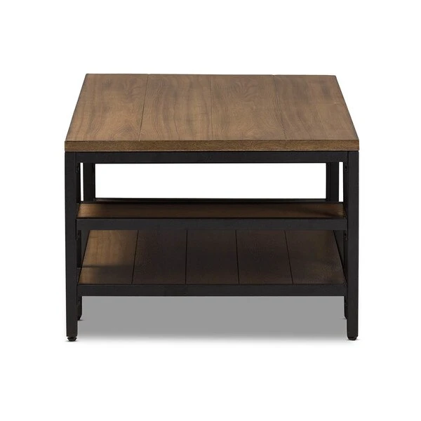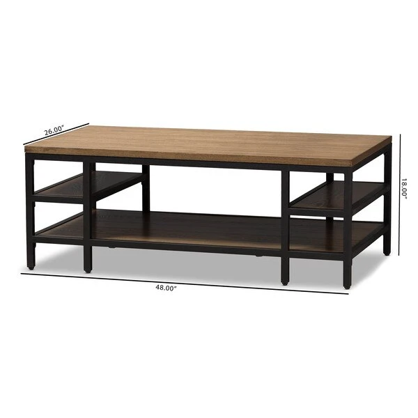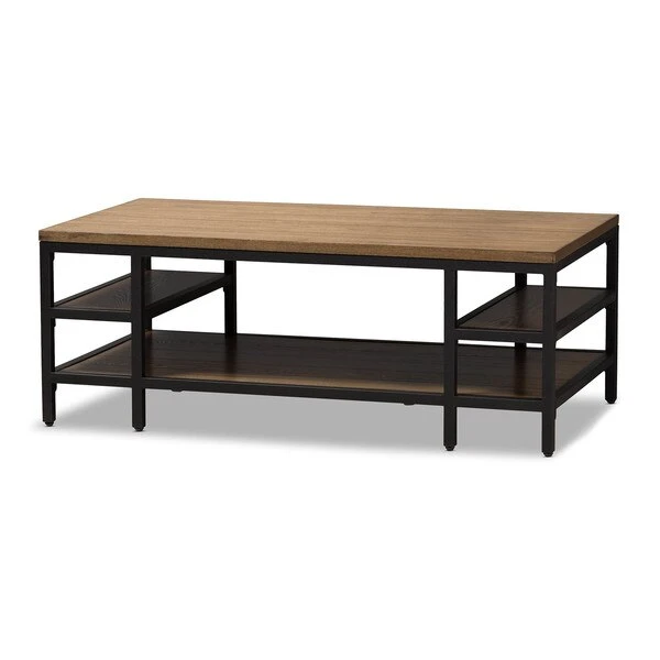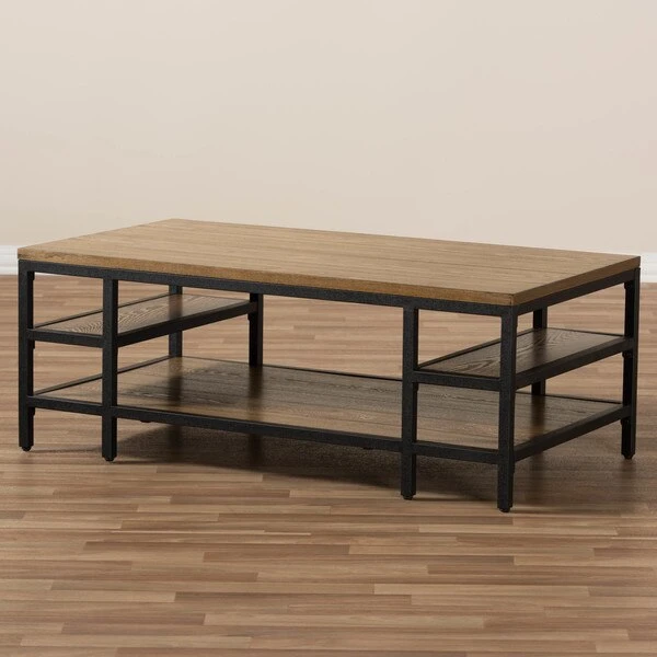 Rugged construction and attention to visual detail make our Caribou metal and wood coffee table a standout piece of modern furniture. Distressed ash-veneer wood top and shelf join with rustic iron metal in antiqued textured black finishing form a design that's a fantastic representation of a modern approach that also speaks of timelessness. Contrasting panel and wood-grain directions enhance the eye appeal. The occasional table requires assembly.