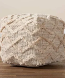 Baxton Studio Carilyn ModernMoroccan Inspired Ivory Handwoven Wool Blend Pouf Ottoman