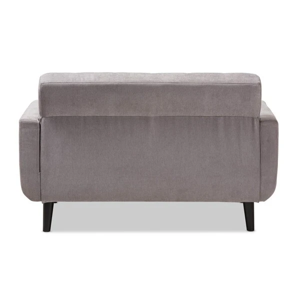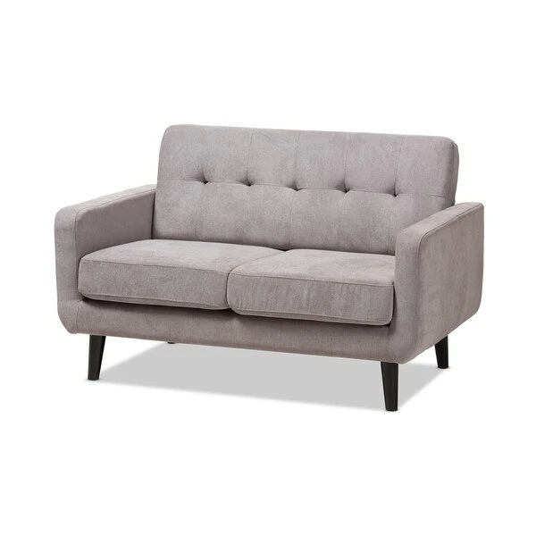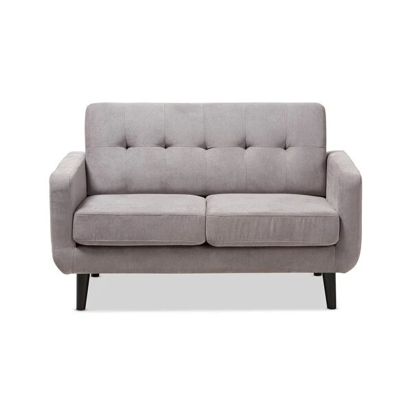 The Carina loveseat proves that a design can be simple and fun at the same time. The mid-century modern-inspired design is updated with grey fabric upholstery. The Carina is generously foam-padded for hours of comfort. The seatback features an attractive grid-tufting detail. The casual yet cool low-profile Carina sits on tapered espresso brown legs. This loveseat will be easy to coordinate with the decor of your livingroom, reception area, or other shared space. The cushions are removable for ease of cleaning. Complete the classy, cool look with other pieces in the Carina range. The loveseat requires assembly.