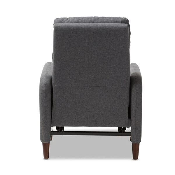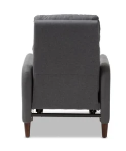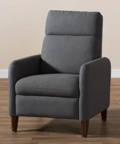 It's easy to imagine getting cozy in the Casanova recliner. The minimalist, modern and contemporary-inspired design evokes a sense of sophistication. The Casanova is constructed of hardwood and plywood, upholstered in gray fabric, and resting on solid, walnut-finished eucalyptus legs to be a lasting piece in your collection. This chair is foam-padded for comfort, and features a reclining back, raising footrest, hidden steel push-back mechanism, and arms placed at a height to promote relaxation and lounging. The versatile style of the Casanova makes it easy to coordinate in your livingroom, guest room, nursery, and any other shared space. This recliner requires assembly.