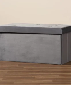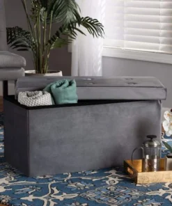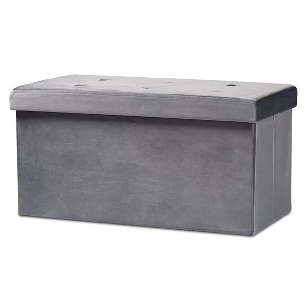 Baxton Studio Castel ModernCharcoal Velvet Upholstered Wood Storage Ottoman