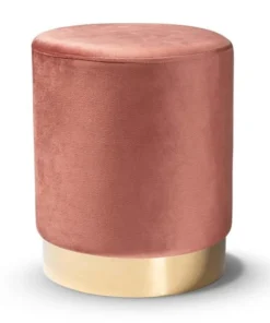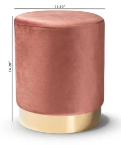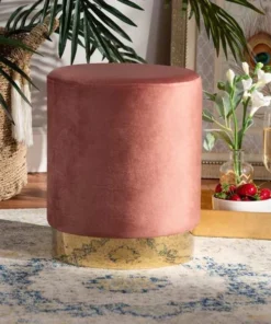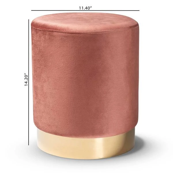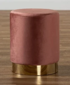 Baxton Studio Chaela Contemporary Glam and Luxe Blush Pink Velvet Upholstered and Gold Finished Metal Ottoman