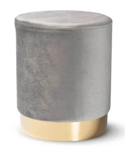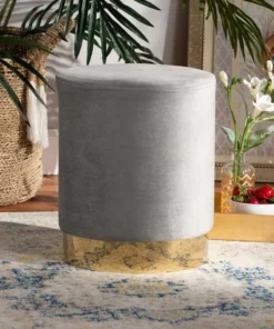Baxton Studio Chaela Contemporary Glam and Luxe Grey Velvet Upholstered and Gold Finished Metal Ottoman