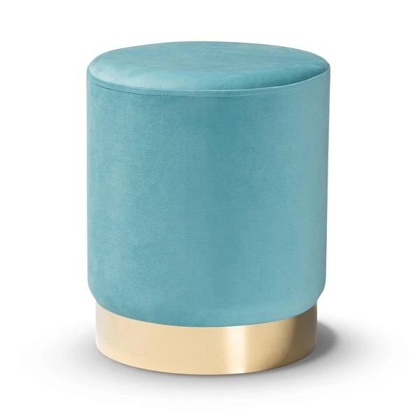 Baxton Studio Chaela Contemporary Glam and Luxe Sky Blue Velvet Upholstered and Gold Finished Metal Ottoman