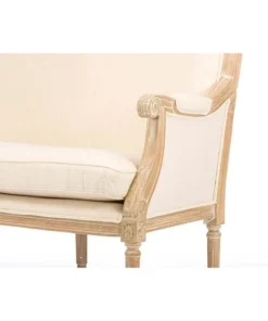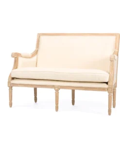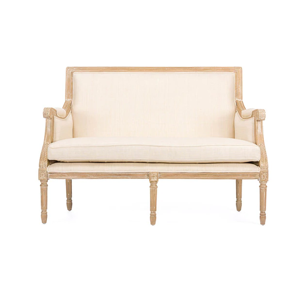 A distressed, antiqued finish complete with authentic white streaking distinguishes our Chavanon Wood Traditional French Loveseat within the discount-furniture arena. Bringing traditional style to the modern age, this loveseat offers visually versatile foam-cushioned, beige cotton upholstery. The combined contoured and straight-edged mindi wood frame speaks elegance while offering superior stability.
