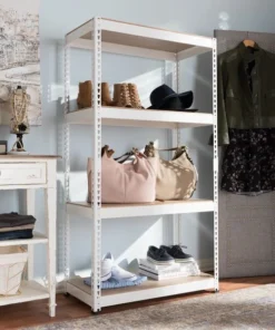 Featuring multipurpose storage system, the Cody can be used in living room, dress room, study room, kitchen and even in the porch. Constructed of metal and MDF boards, the Cody is finished in black epoxy powder coating. This boltless shelf holds up to 220 lbs. per level and the height is adjustable based on your needs. A urethane hammer is included in the package for quick and easy installation. Featuring clean and modern look, this white shelf provides flexible storage solution to your lifestyle without breaking the bank. The Cody requires assembly.