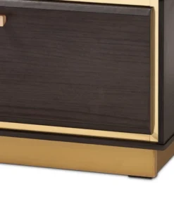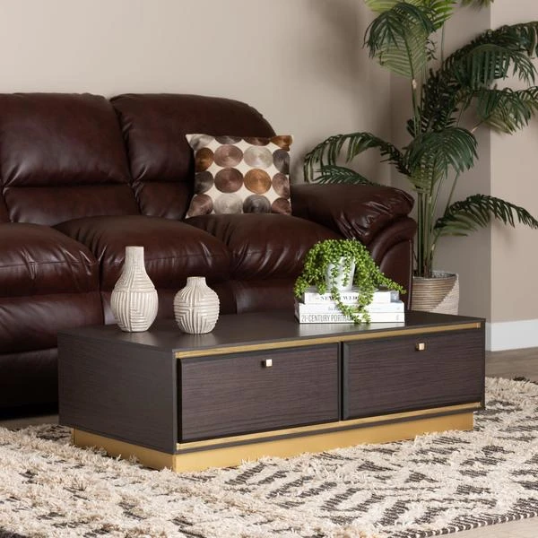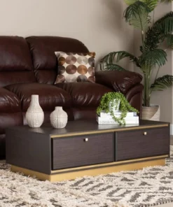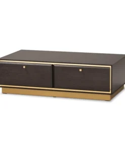 Baxton Studio Cormac Transitional Dark Brown Finished Wood and Gold Metal 2-Drawer Coffee Table