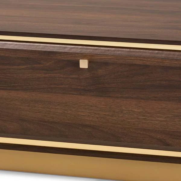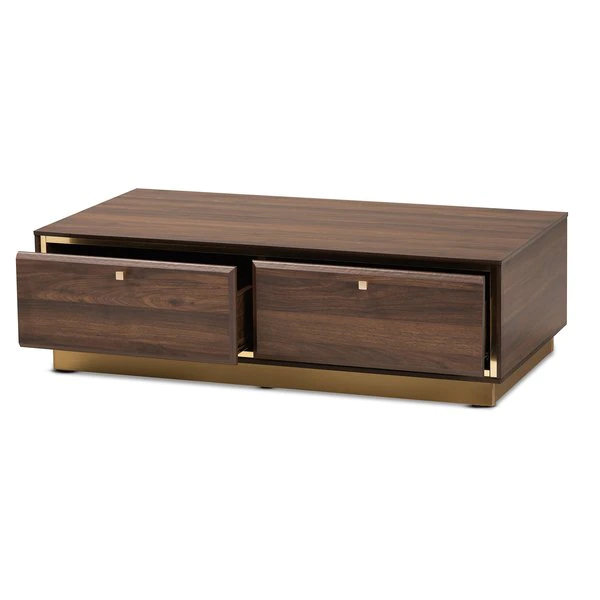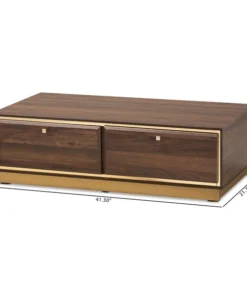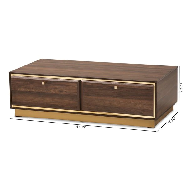 Baxton Studio Cormac Transitional Walnut Brown Finished Wood and Gold Metal 2-Drawer Coffee Table