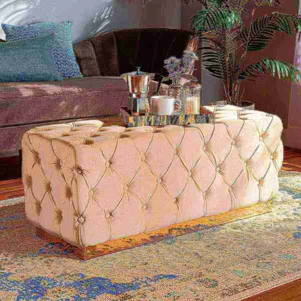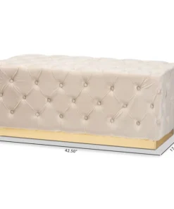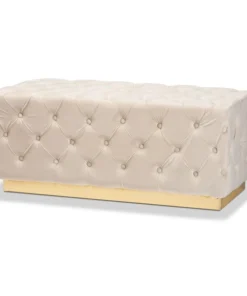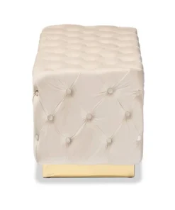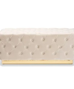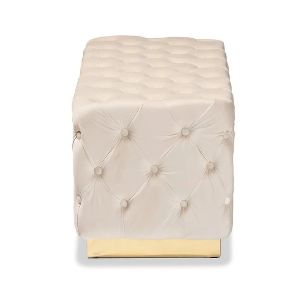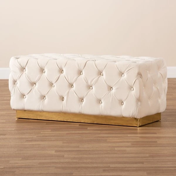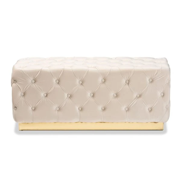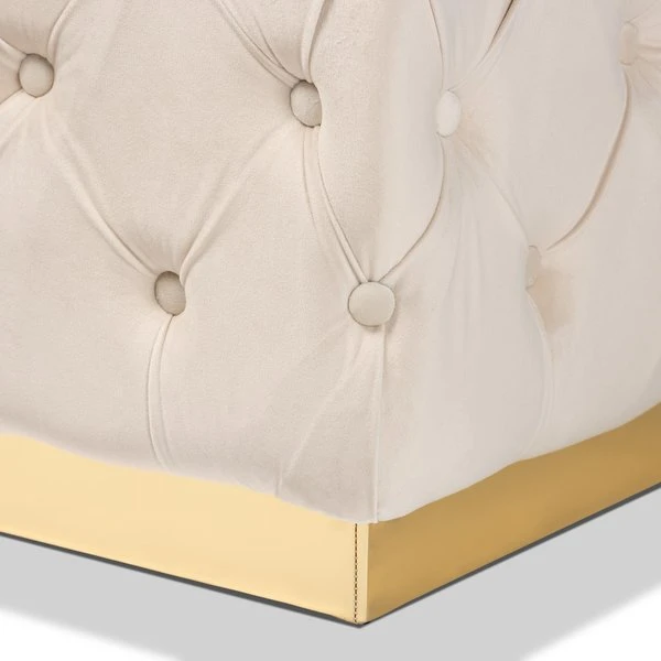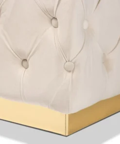 Elevate your space with the luxurious design of the Corrine ottoman. Made in China, the Corrine is comprised of a solid wood frame padded with a plush layer of foam and upholstered in soft, sumptuous velvet fabric. All over button tufting lends striking visual appeal from any angle. Fully assembled, the ottoman features a gold-tone PU leather base for added glamour. With both stunning style and cozy comfort, the Corrine ottoman adds the perfect touch of grandeur to any space.