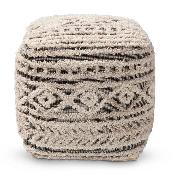 Add a cozy, bohemian touch to any space with the Cronin pouf. Handwoven from wool, the Cronin features an understated blend of beige and brown hues. The pouf is overlaid with an intricately woven geometric pattern, lending rich texture. This versatile piece can be used as a seat, footstool, or casual coffee table.