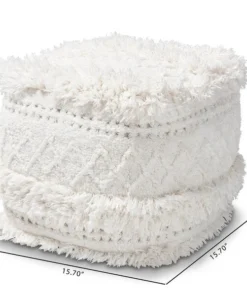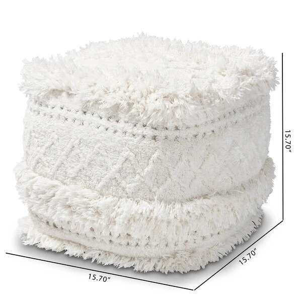 Add a cozy, bohemian touch to any space with the Curlew pouf. Handwoven from a soft, fleece-like cotton, the Curlew features a chic ivory hue. Its rich mix of textures adds interest to even the simplest spaces. This versatile piece can be used as a seat, footstool, or casual coffee table.