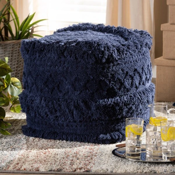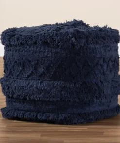 Add a cozy, bohemian touch to any space with the Curlew pouf. Handwoven from a soft, fleece-like cotton, the Curlew features a chic navy hue. Its rich mix of textures adds interest to even the simplest spaces. This versatile piece can be used as a seat, footstool, or casual coffee table.