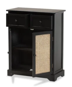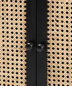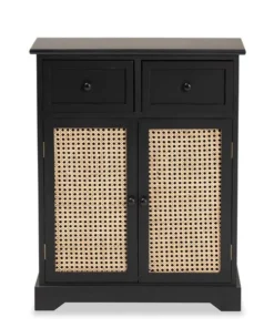 A beautiful piece of modern design with a retro feel, the Dacey storage cabinet elevates any interior layout. Made in China, this handy piece is comprised of a sturdy wood frame accented with rattan. Two drawers offer storage to organize household essentials while doors accented with woven rattan open to reveal two spacious shelves. Requiring minor assembly, the Dacey features round drawer knobs and inset paneling for a striking texture and depth. With excellent convenience in a remarkable design, the Dacey storage cabinet enhances any space.