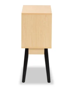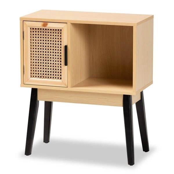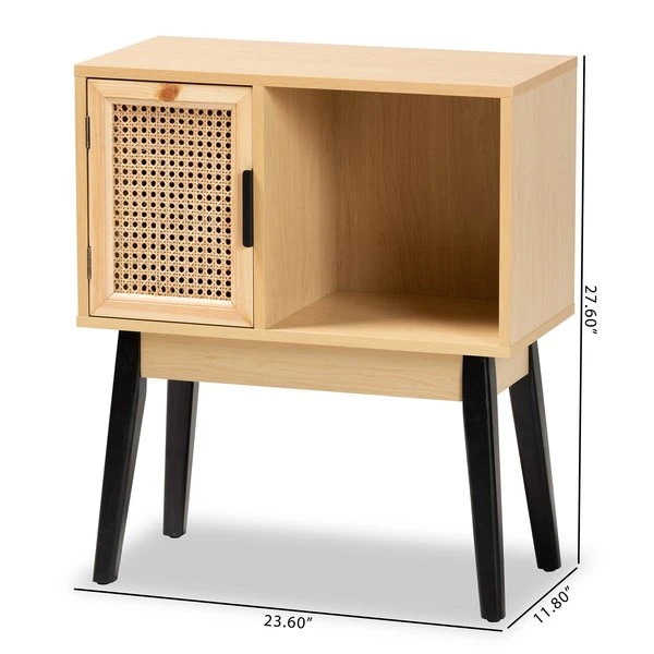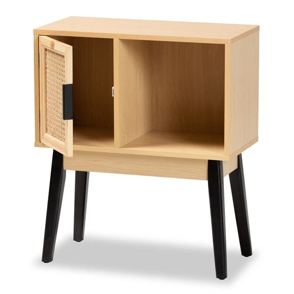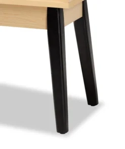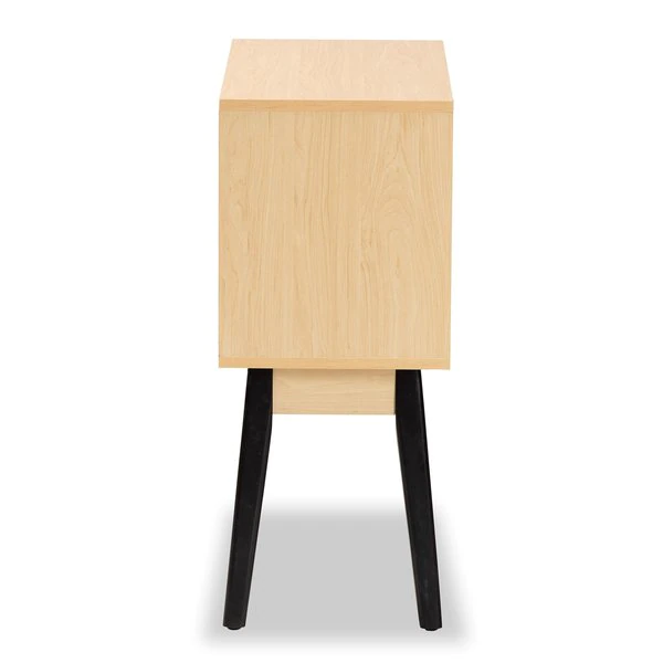 Baxton Studio Dacre Transitional Two-Tone Oak Brown and Black Finished Wood Console Table with Natural Rattan