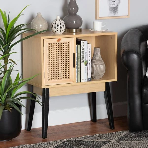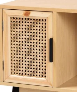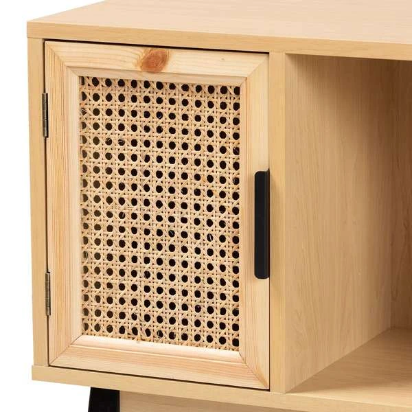 Nurture a hearty atmosphere in your space with the Dacre console table. This handy piece is comprised of a sturdy wood frame adorned with natural rattan. The open shelf creates a lovely display for decorative items while an additional shelf behind the door offers secure storage space. The Dacre requires assembly and features angled legs that offer excellent stability and support in stunning style. A wonderful blend of classic and contemporary design, the Dacre console table revitalizes any interior space.