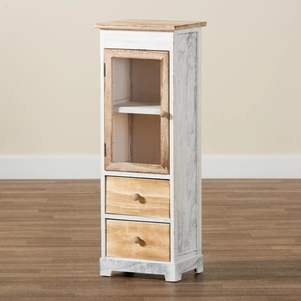 Baxton Studio Dannah Traditional Two-Tone Oak Brown and White Finished Wood 2-Drawer Storage Cabinet