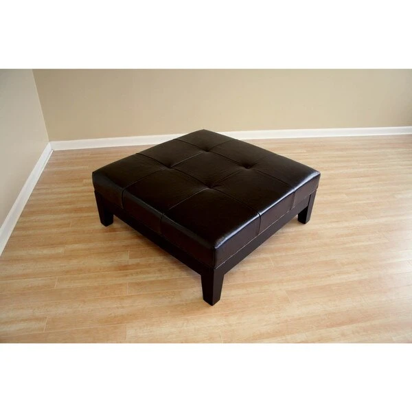 Full-leather upholstered cocktail ottoman features rich, contemporary style and functional design, constructed with a sturdy wood frame, stylish piped edging, comfortable foam fill, durable button-tufted design.