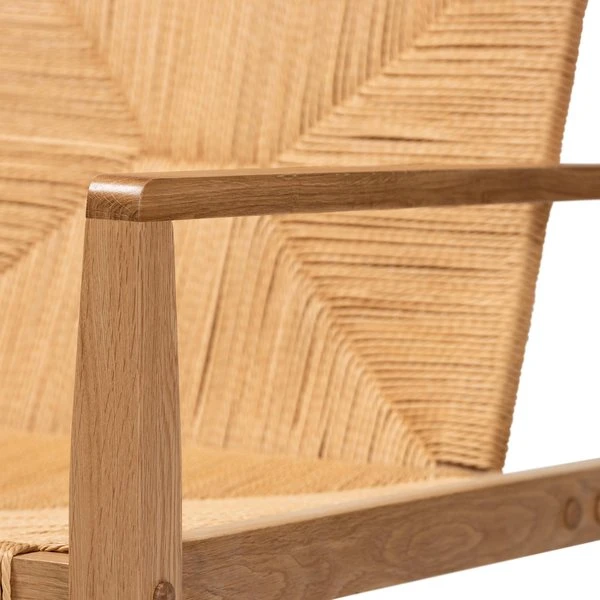 Baxton Studio Delaney Mid-Century Oak Brown Finished Wood and Hemp Accent Chair